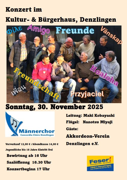 m Sonntag, den 30. November 2025, dürfen wir als musikalische Gäste beim Konzert des Männerchors der Concordia-Chöre Denzlingen im Kultur- und Bürgerhaus mitwirken. Unter dem Motto „Freundschaft“ erwartet das Publikum […]